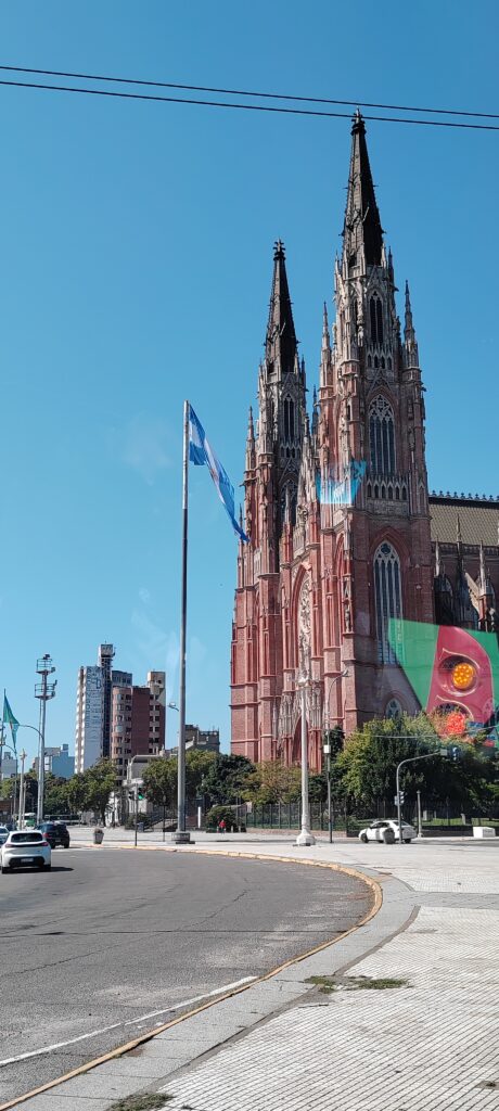 Una postal imperdible de esta maleteada a La Plata es visitar la Plaza Moreno y desde sus jardines podrás lograr la foto perfecta, es que visitar La Plata y pasar a obra de la ingeniería y templo de adoración cristiano, es como decir que no visitaste La Plata.