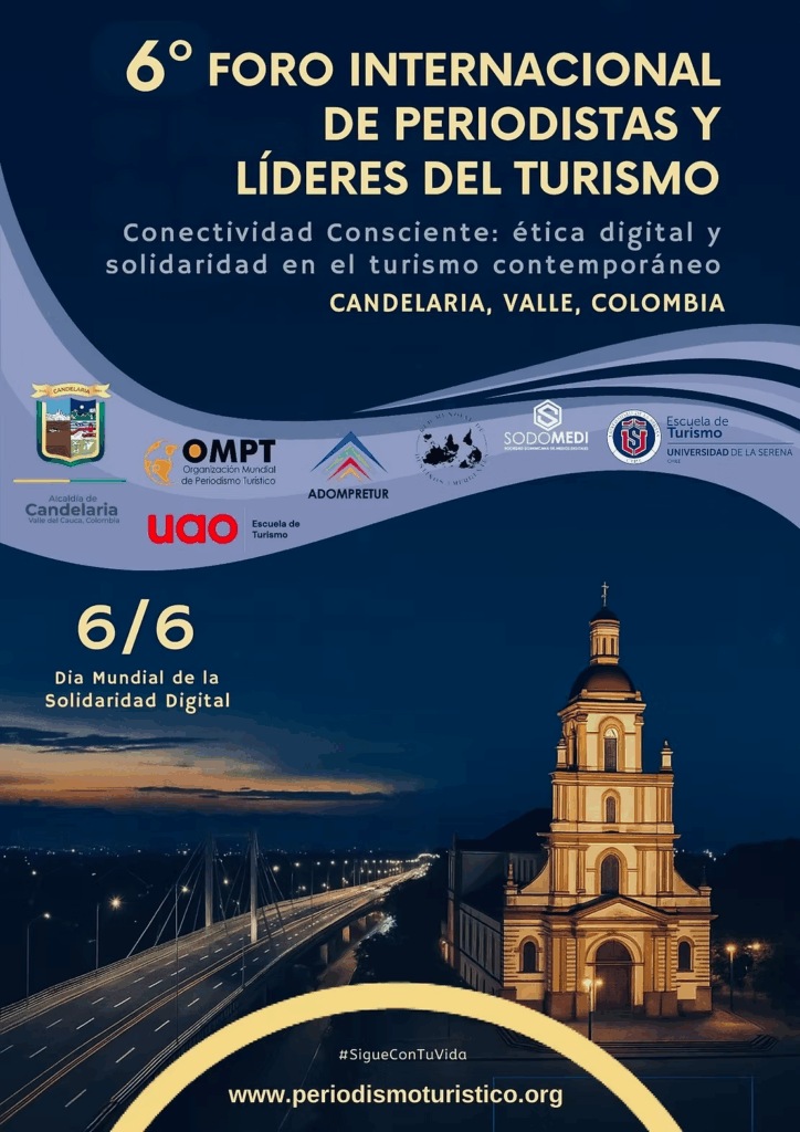 Como parte de las actividades que adelanta la Organización Mundial de Perioditas de Turismo (OMPT), este 6 de junio se celebrará el día de la Solidaridad Digital, en el marco del Sexto Foro Internacional de Periodistas y Líderes del Turismo, este año será en modalidad híbrida y la sede será Candelaria, Valle del Cauca, Colombia.
